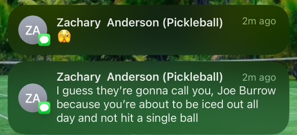 This match half the game was 5 all. They unhitched the trailer shortly after a few, well timed mistakes. We start to finally control the tempo. I was in a drop and reset only mindset. Looking to play another or set up “routes” for my partner. Kyle did a great job or seeing most of the key balls. At one point I did check out. Though we both blew two gam points. Coming back from 10 – 5, especially when not realizing it’s win by won. I blew the last point, but that was the story of the day.